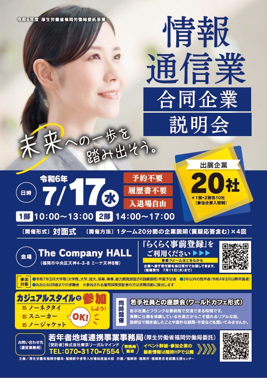 福岡労働局主催の合同企業説明会に当社が参加します。